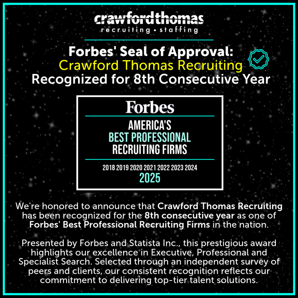 Crawford Thomas Recruiting Named to Forbes List of America’s Best Professional Search Firms for Nearly a Decade